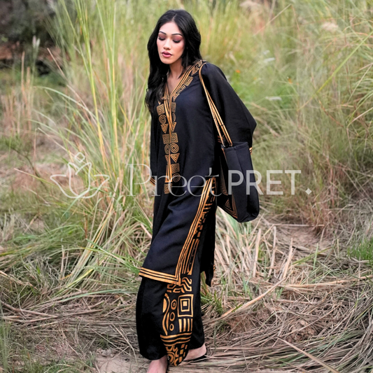 ALMOND PLAZZO BLACK STICHTED 2PCS